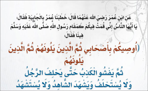 أوصيكم بأصحابي ثم الذين يلونهم ثم الذين يلونهم ثم