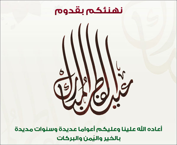 يطيب لي تهنئتكم بقدوم عيد الفطر المبارك