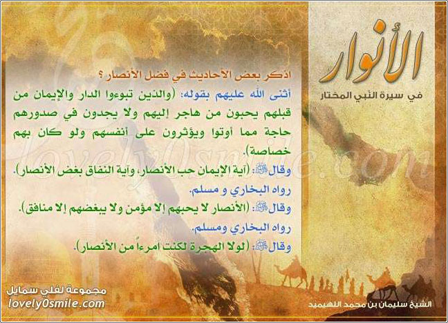 بعض فضائل الأنصار + أين توجد ب