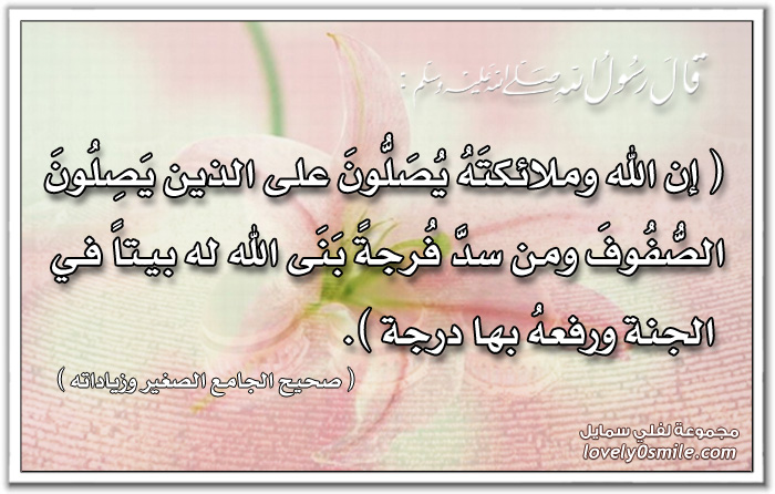 إن الله وملائكته يصلون على الذين يصلون الصفوف ومن سد فرجة بنى الله له بيتا في