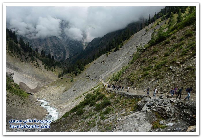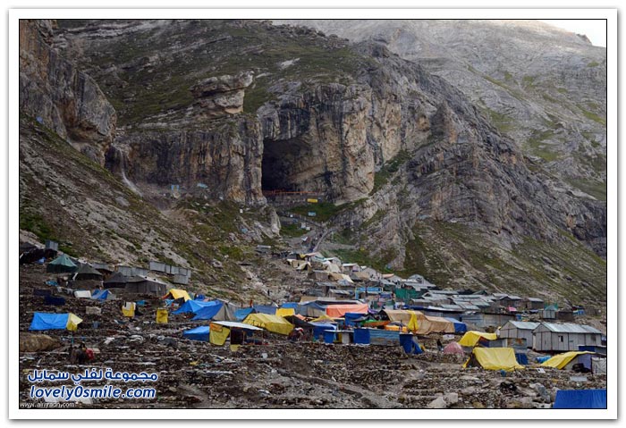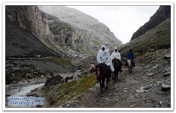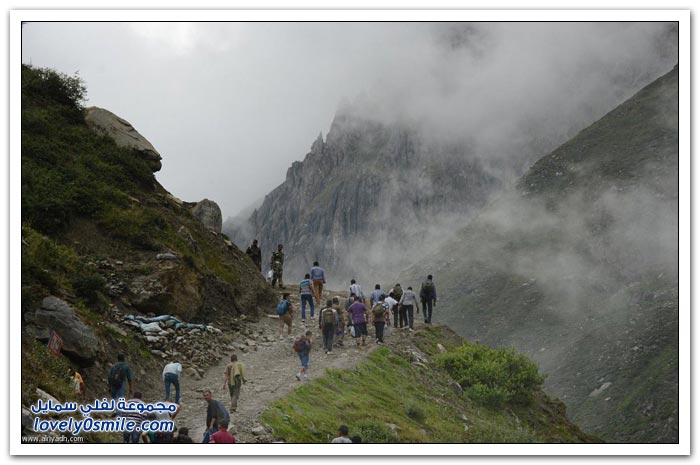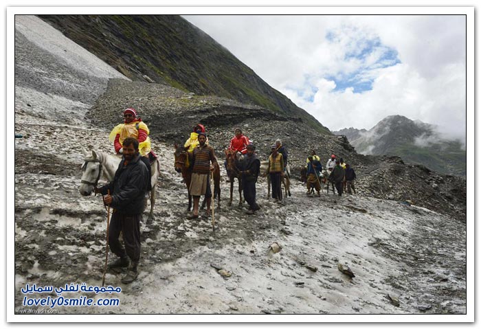 يقوم آلاف الحجاج الهندوس برحلة شاقة عبر جبال كشمير لزيارة كهف امارناث الذي يقع على ارتفاع 3857 متر