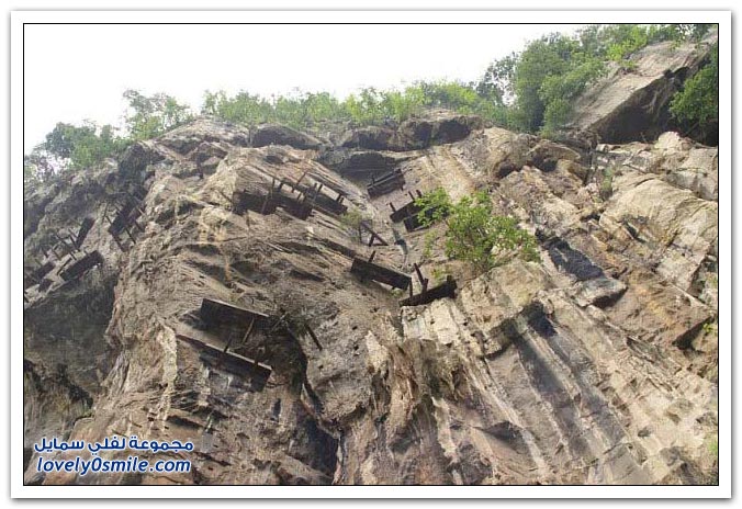 - هناك المئات من النعوش المعلقة في المنطقة تقع المنخفضة منها على بعد 10 أمتار فوق سطح الأرض وأعلاها على بعد 130 متر فوق سطح الأرض.