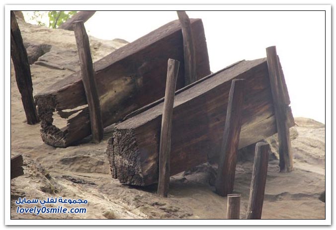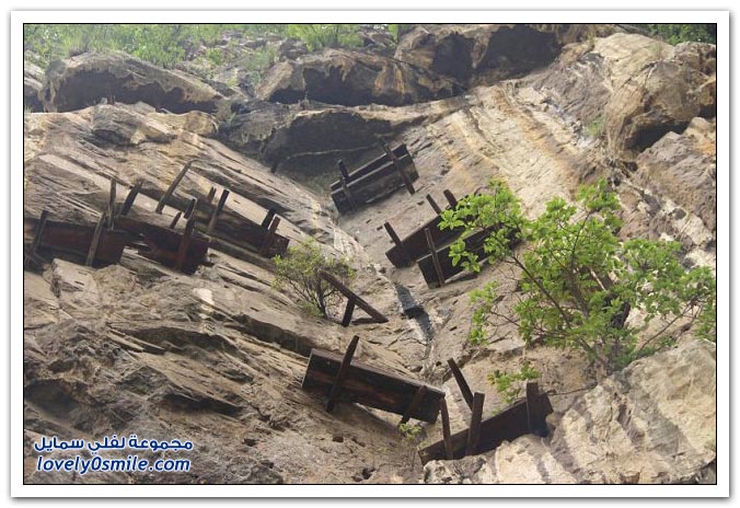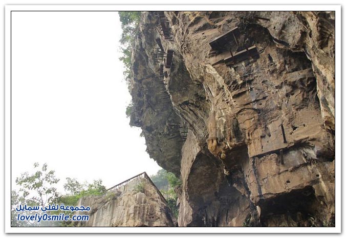* هذه التوابيت الغريبة المعلقة على المنحدرات الجبلية في جونغشيان بمقاطعة سيتشوان حيرت أهالي جنوب الصين لعدة قرون. هي نعوش علقها قوم "بو" قبل 400 عام، وكانوا قد صنعوها من جذع الأشجار المجوفة وصبغوها بطلاء برونزي لحمايتها.