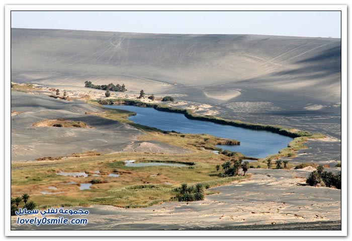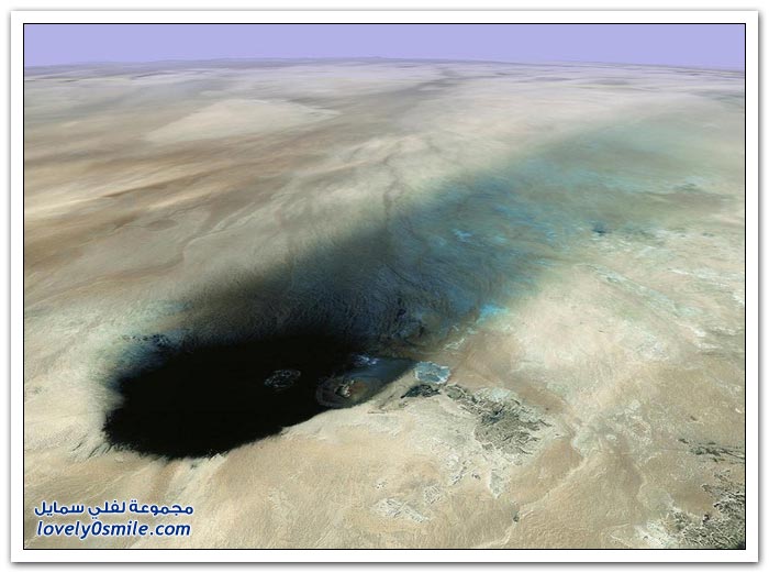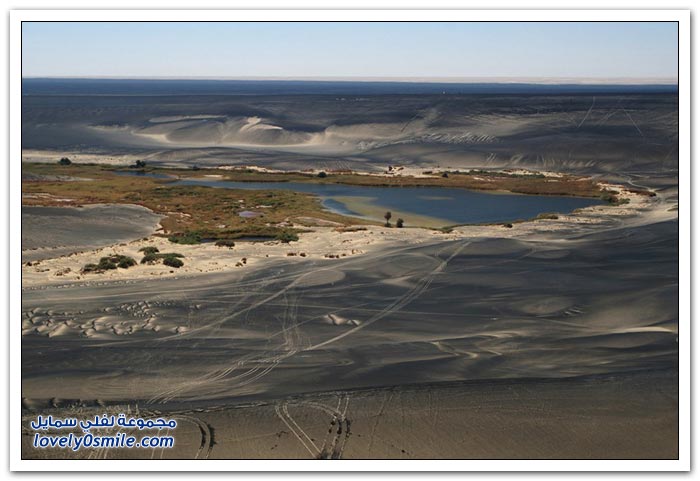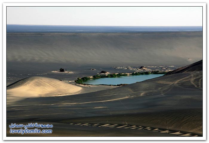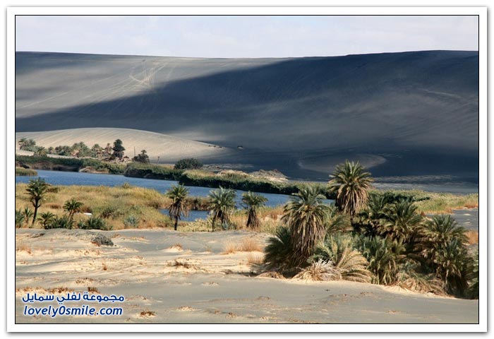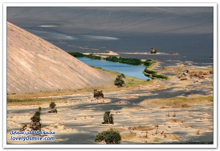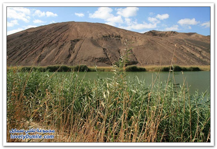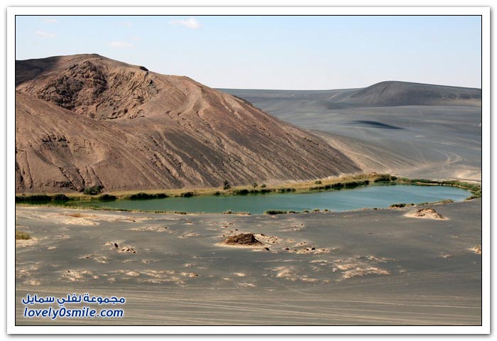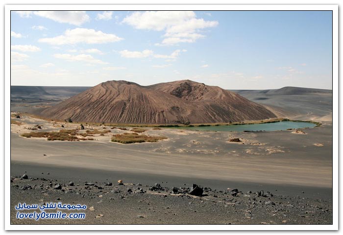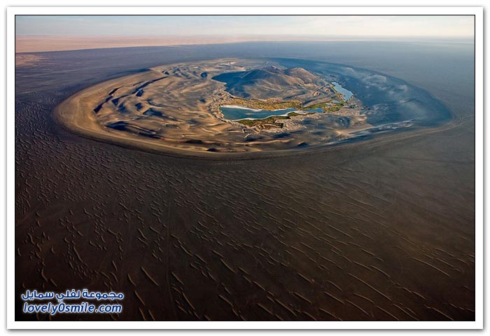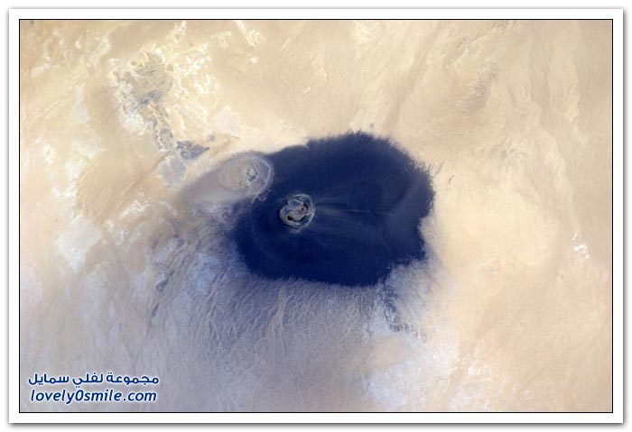 * إنها صورة جبل واو الناموس في ليبيا، وهو عبارة عن تكوين جيولوجي عجيب يقع في جنوب وسط ليبيا، حيث يتمزج سواد البازلت البركاني مع خضرة الأشجار والنباتات، وزُرقة البحيرات المحيطة به وسط رمال الصحراء الذهبية، لتصنع جميعها لوحة فنية في منتهى الجمال!