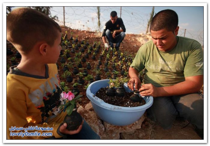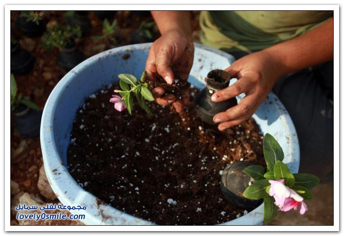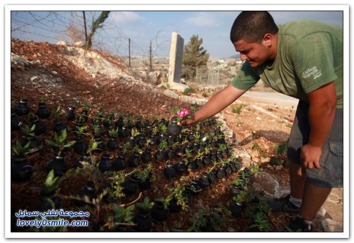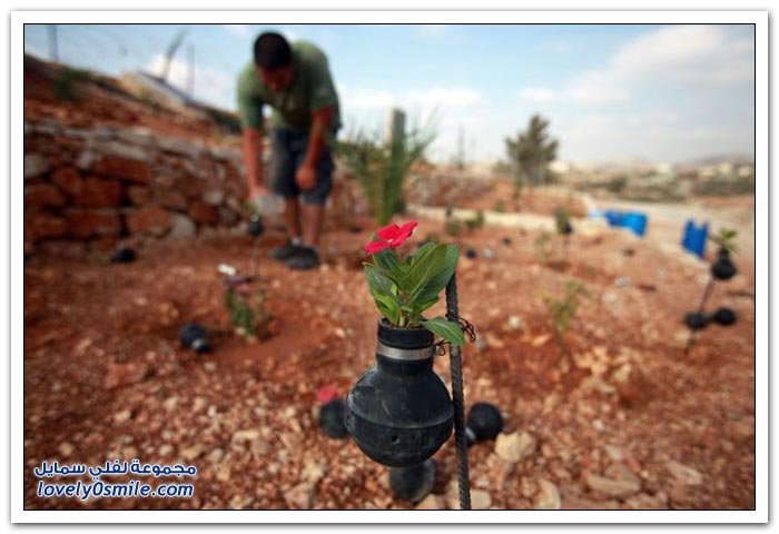 تحويل قنابل الغاز الفارغة إلى مزهريات في فلسطين