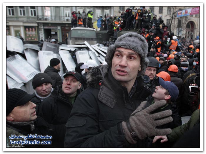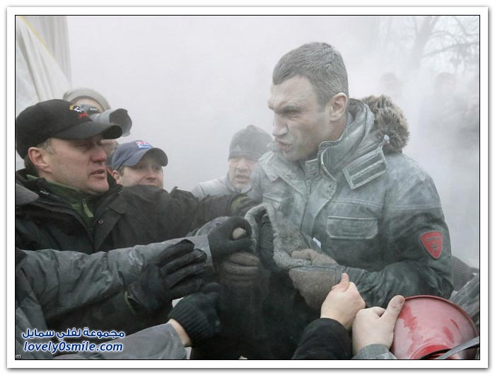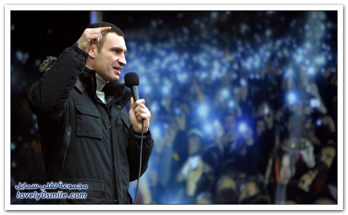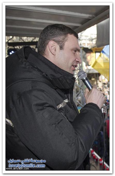 بطل العالم الملاكم الأوكراني فيتالي كليتشكو الذي تخلى عن الدفاع عن لقبه لأجل التفرغ للمشاركة السياسية والترشح للانتخابات الرئاسية.