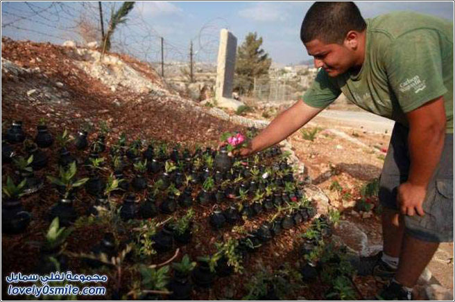 تحويل قنابل الغاز الفارغة إلى مزهريات في فلسطين