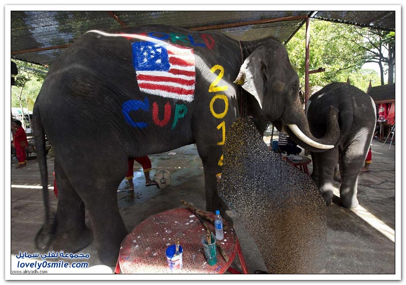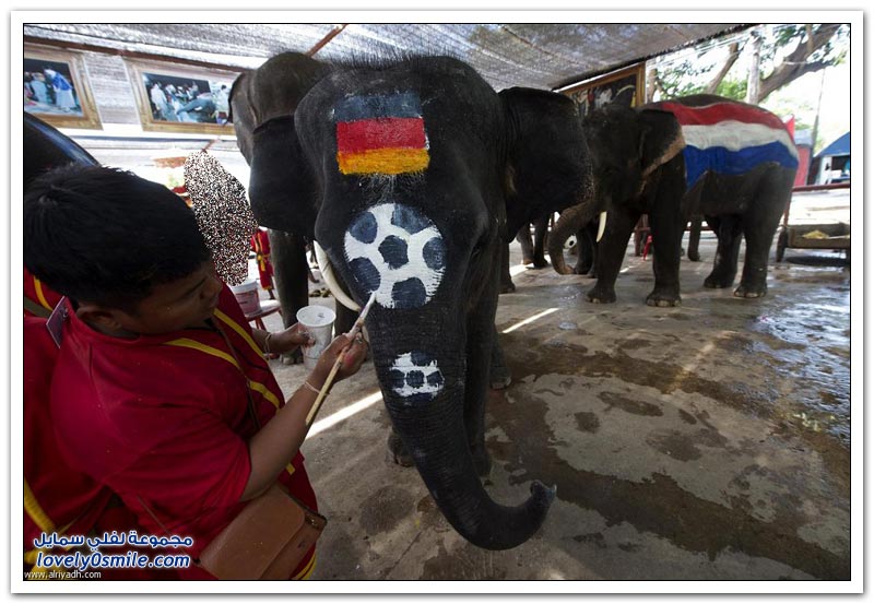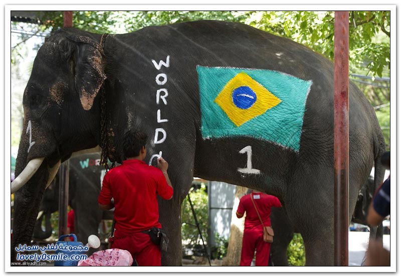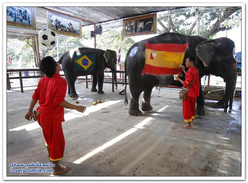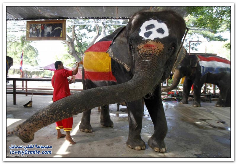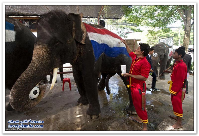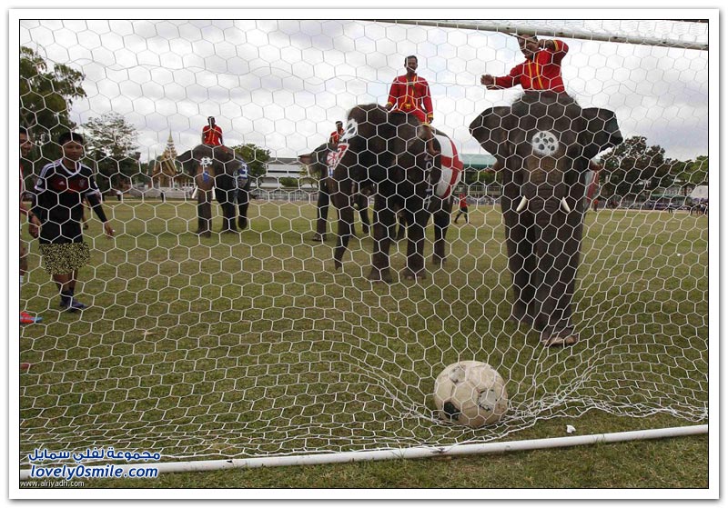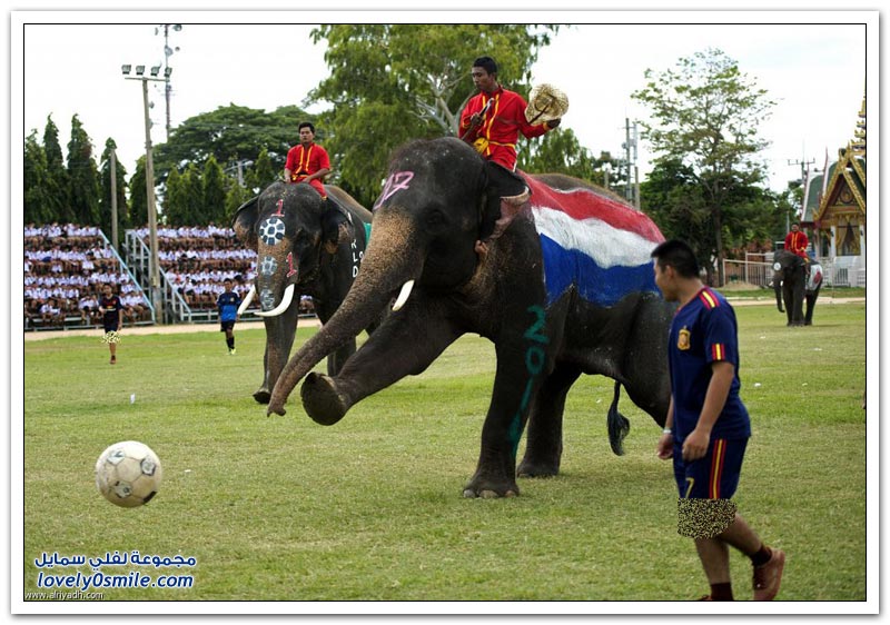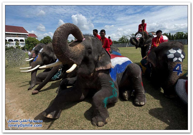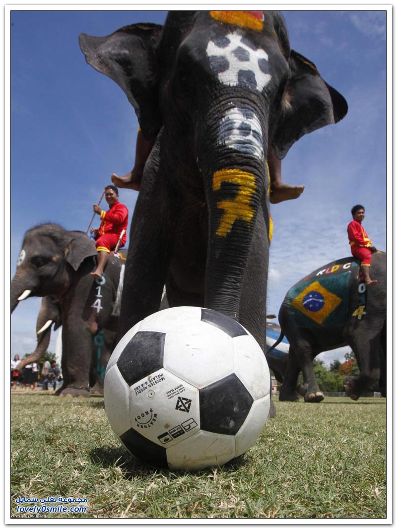 أقيمت مباراة بين الفيلة والطلاب التايلنديين ضمن حملة لتشجيع كأس العالم في إقليم أيوتايا