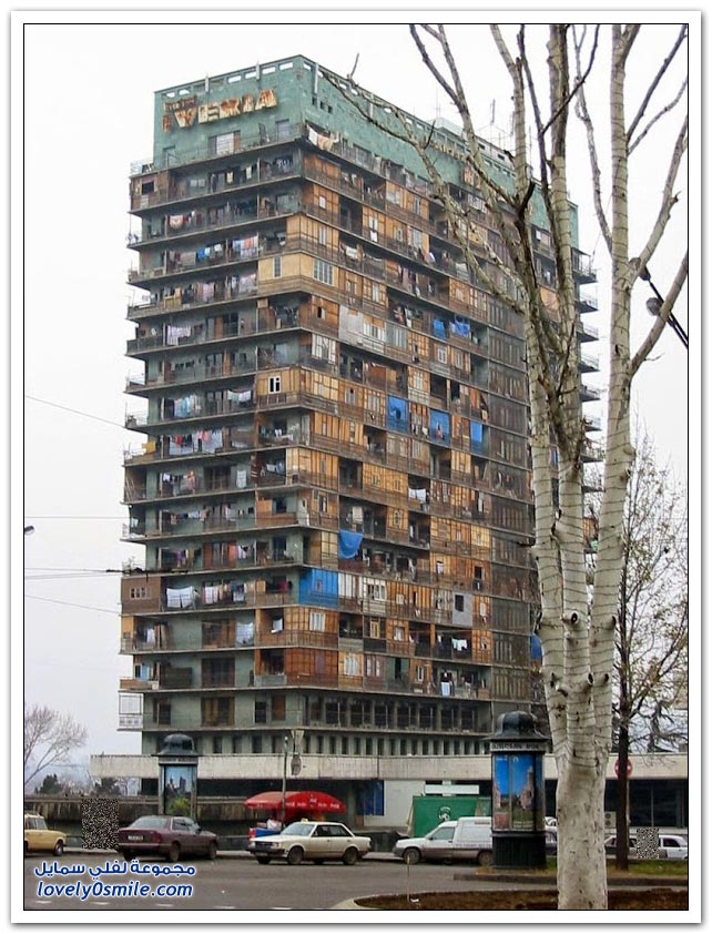 * تحول فندق"راديسون بلو" بجورجيا، والذي تم بناءه عام 1967 ،من أرقى الفنادق في جورجيا كلها، إلى مأوى ومخيم للاجئين.