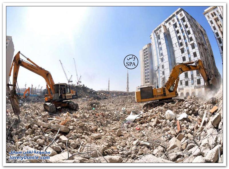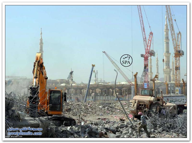 جانب من أعمال إزالة العقارات الواقعة ضمن توسعة خادم الحرمين الشريفين للمسجد النبوي