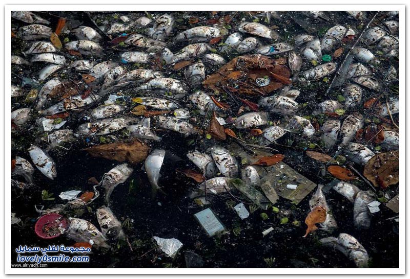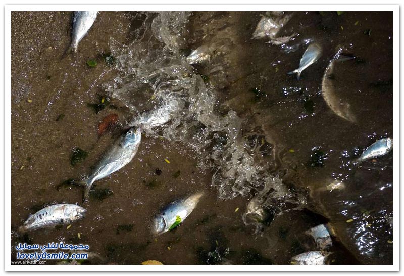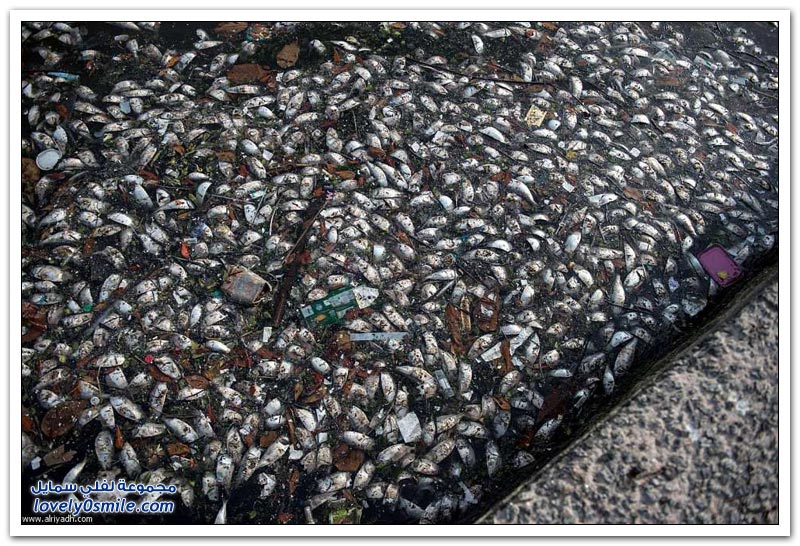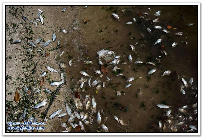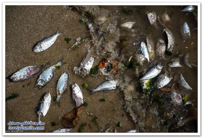 نفوق أعداد كبيرة من الأسماك لأسباب مجهولة على شاطئ جزيرة باكيتا في ريو دي جانيرو بالبرازيل
