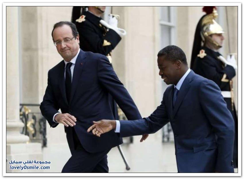 صورة للرئيس الفرنسي وحظه السيء في مصافحة الرؤساء