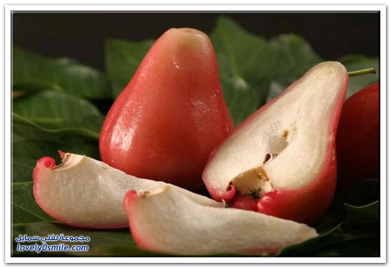 فاكهة تفاح الورد Rose Apple هي من اغرب الفواكه، فهي ذات رائحة مميزة وتشبه رائحة الورد أما شكلها فهو يشبه شكل التفاح.