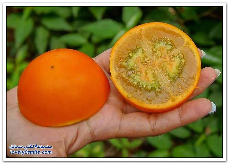 من الخارج يبدو مثل البرتقال، وداخل يشبه الطماطم, في حين أن هذه الفاكهة تمتلك نكهة الحمضيات.