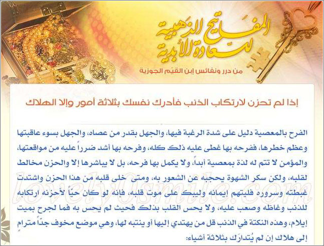 المفاتيح الذهبية للسعادة الأبدية من درر ونفائس ابن القيم الجوزية