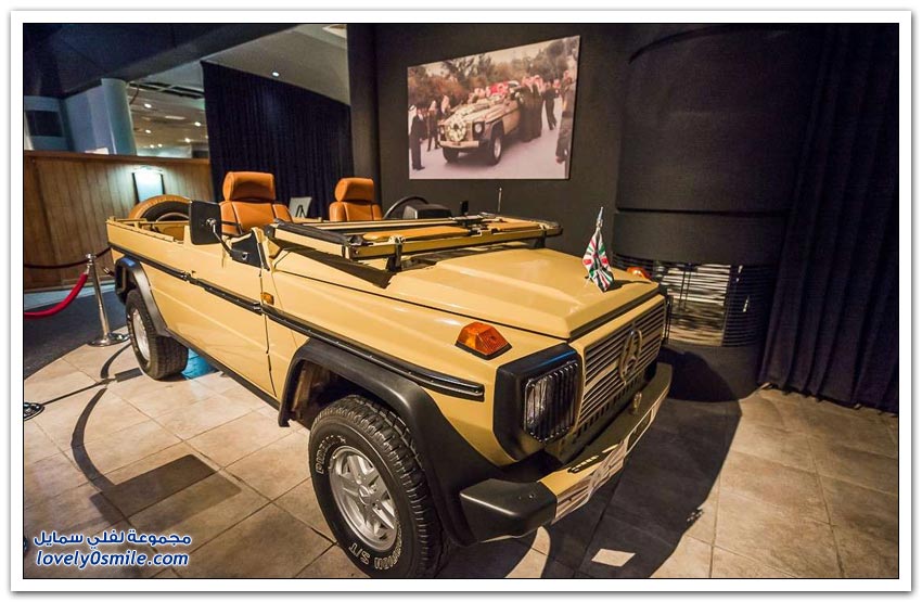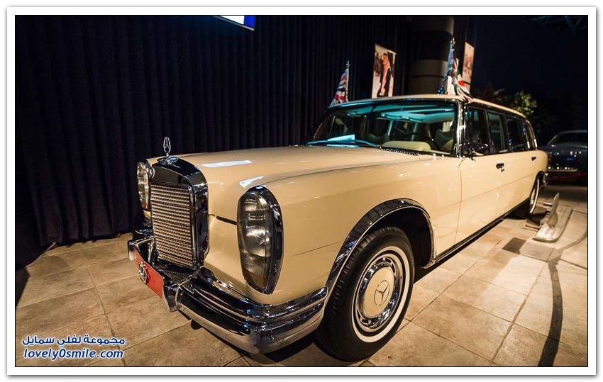 - تقريباً فإن معظم السيارات المعروضة عمرها يزيد على عشر سنوات. هنا يوجد نسخة عن أولى سيارات المرسيدي التي عرفها العالم كما يوجد هنا أيضاً السيارة التي كان يمتلكها لورنس العرب والتي كانت من طراز الرولز رويس.