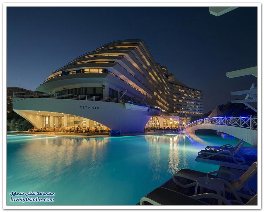 - فكرة بناء الفندق مأخوذة من سفينة تيتانيك الشهيرة والتي غرقت في المحيط الأطلسي في 15 أبريل 1912م.