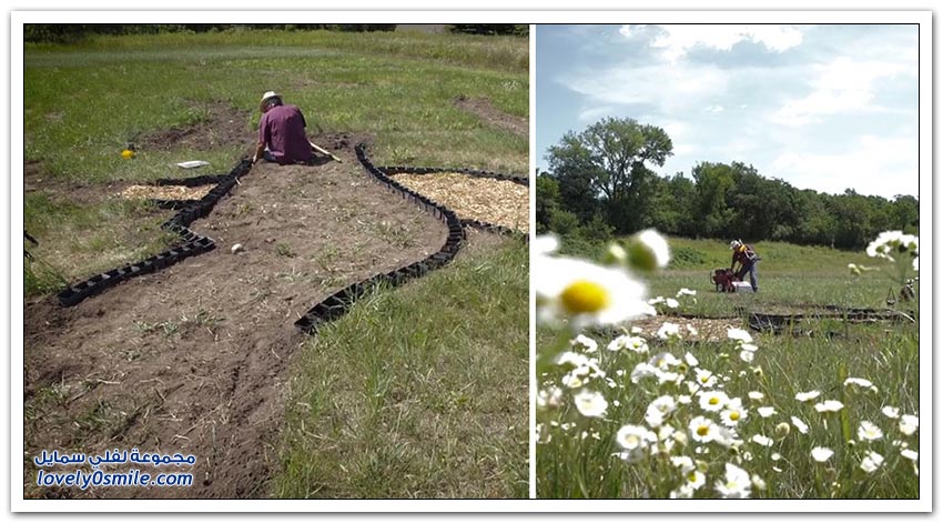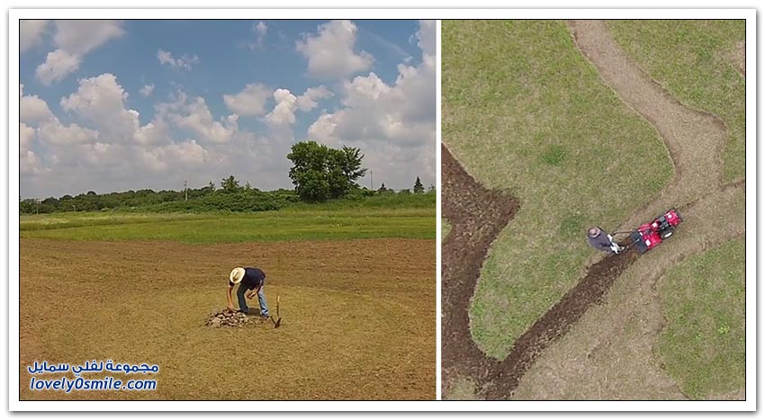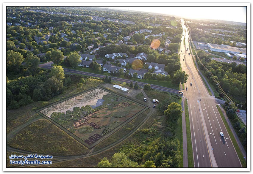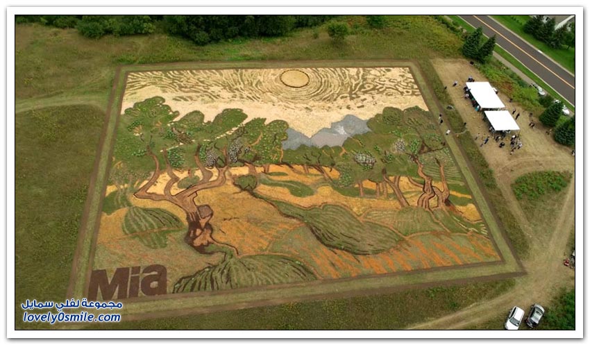 - الفنان ستان هيرد، البالغ من العمر 65 عاماً، أمضى خمسة شهور في تخطيط وزرع قطعة الأرض، حيث قام بتشكيل اللوحة الفنية بالتراب والصخور والأعشاب - وفقا لـ سي إن إن بالعربي .