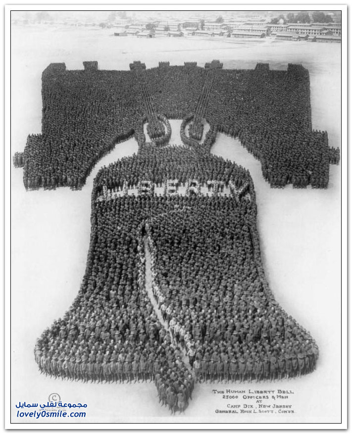 عام 1918م 25000 جندي وضابط يشكلون جرس الحرية في فورت ديكس، نيو جيرسي.