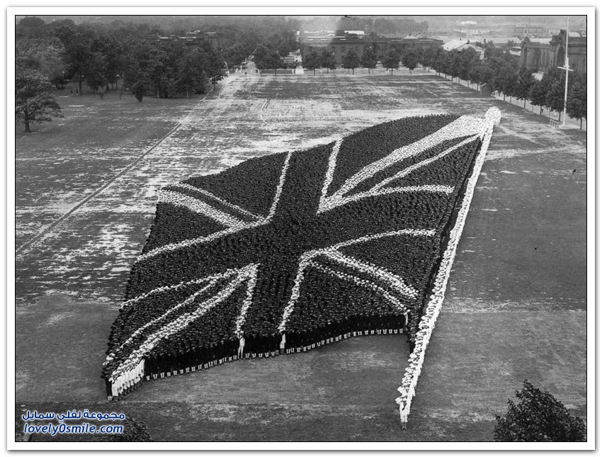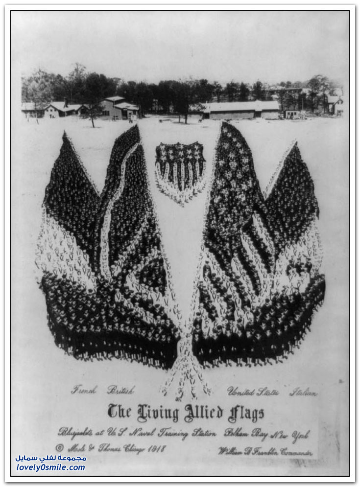 عام 1917م شكل البحارة من البحرية الأمريكية أعلام الحلفاء في خليج بيلهام، نيويورك.