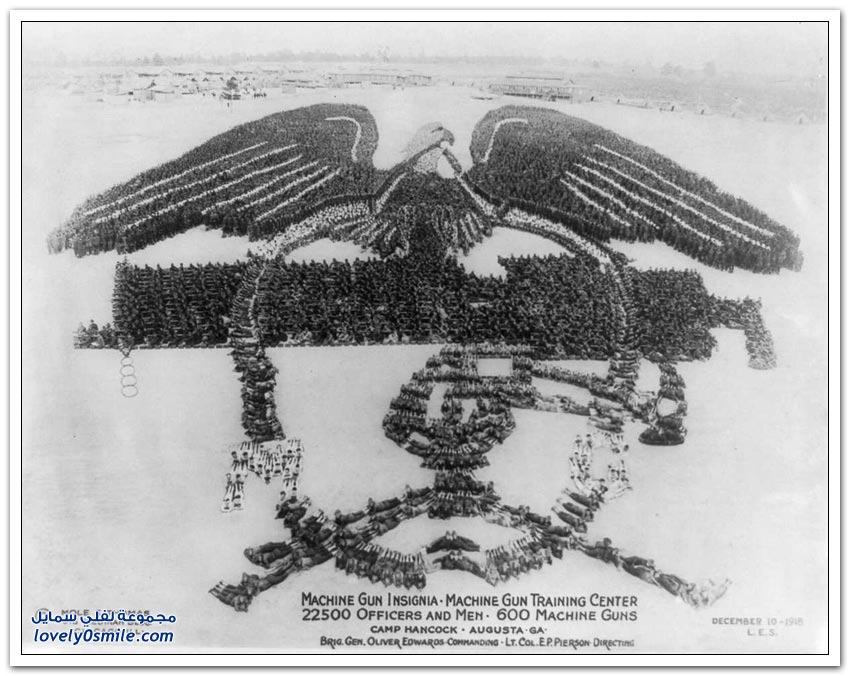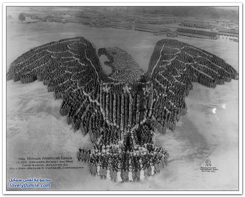 عام 1918م 12500 من الجنود والضباط والممرضات يشكلون النسر الأمريكي في كامب غوردون في ولاية جورجيا.