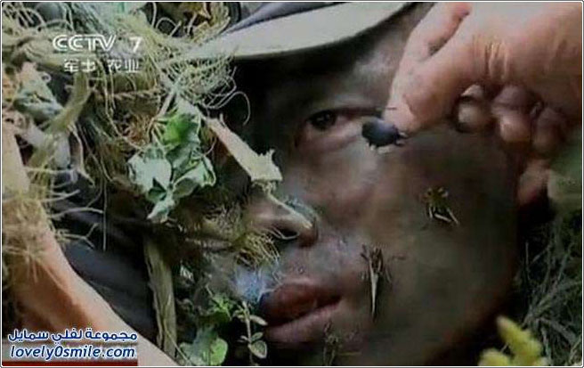 أحد التدريبات الصينية وضع الحشرات على وجه الجنود