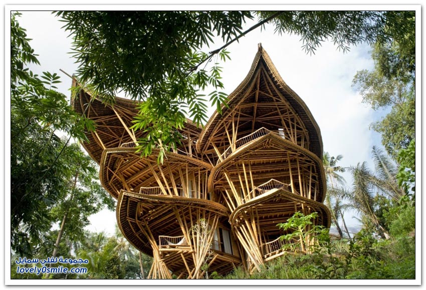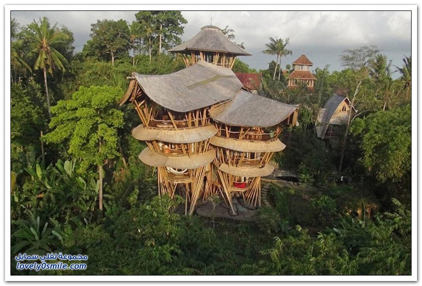 بيوت الخيزران في جزيرة بالي بإندونيسيا