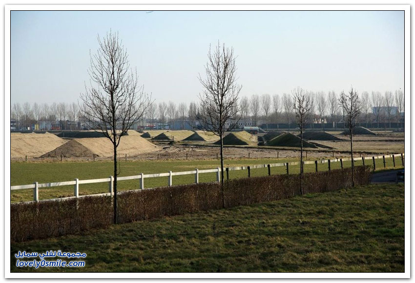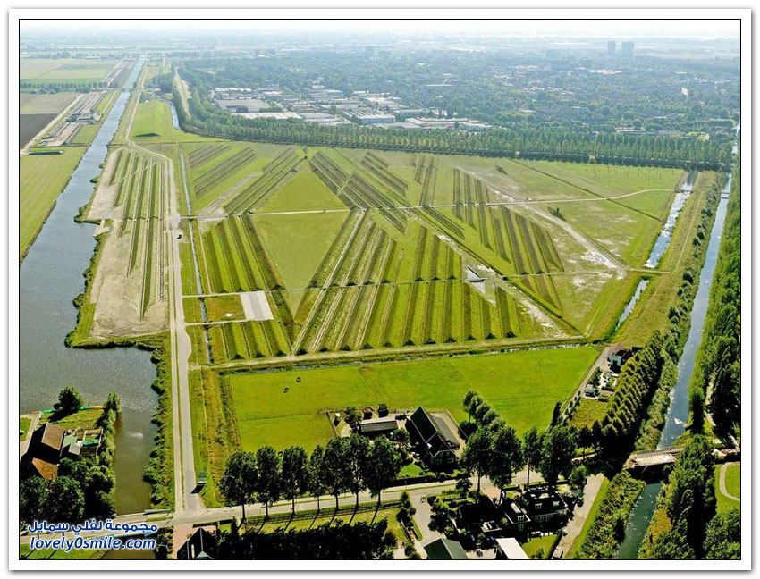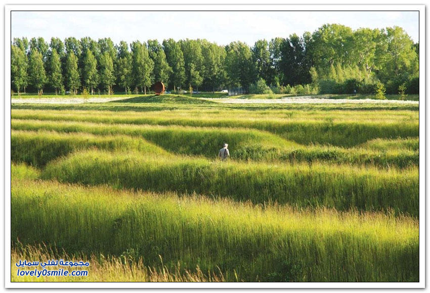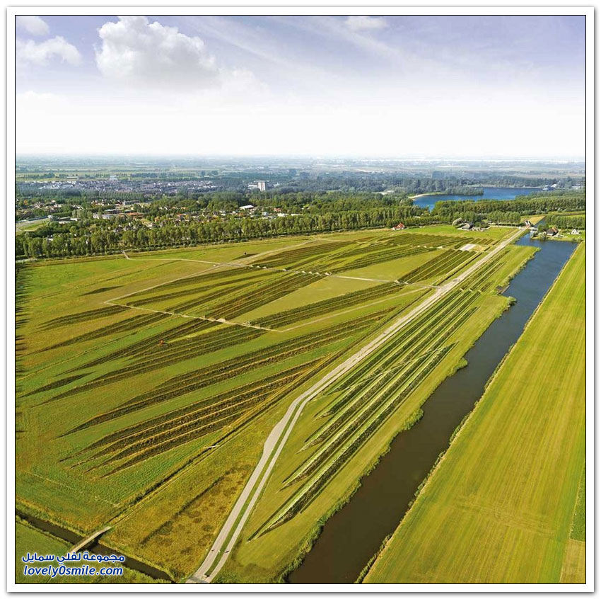 - ولمعالجة تلك المشكلة الكبيرة، استعان المسؤولون في المطار بحل غير عادي قدّمته شركة «H+N=S» لهندسة المناظر الطبيعية والفنان بول دو كورت، بعدما تبيّن أن الضوضاء التي تسببها الطائرات عند الإقلاع خفّت بنسبة كبيرة عندما حُرثت الأراضي الواقعة بين المدرج والمنطقة المأهولة.