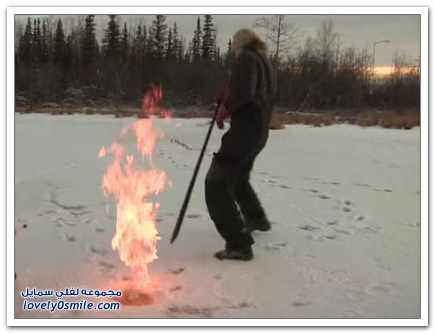 - تتجمّد الفقاعات تحت سطح بحيرة إبراهام، وهي ناتجة عن نبات يعيش في قاع البحيرة وينتج غاز الميثان القابل للاشتعال.