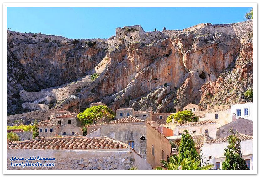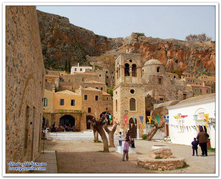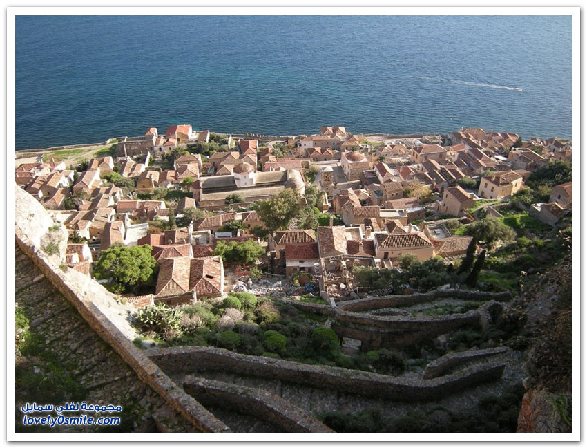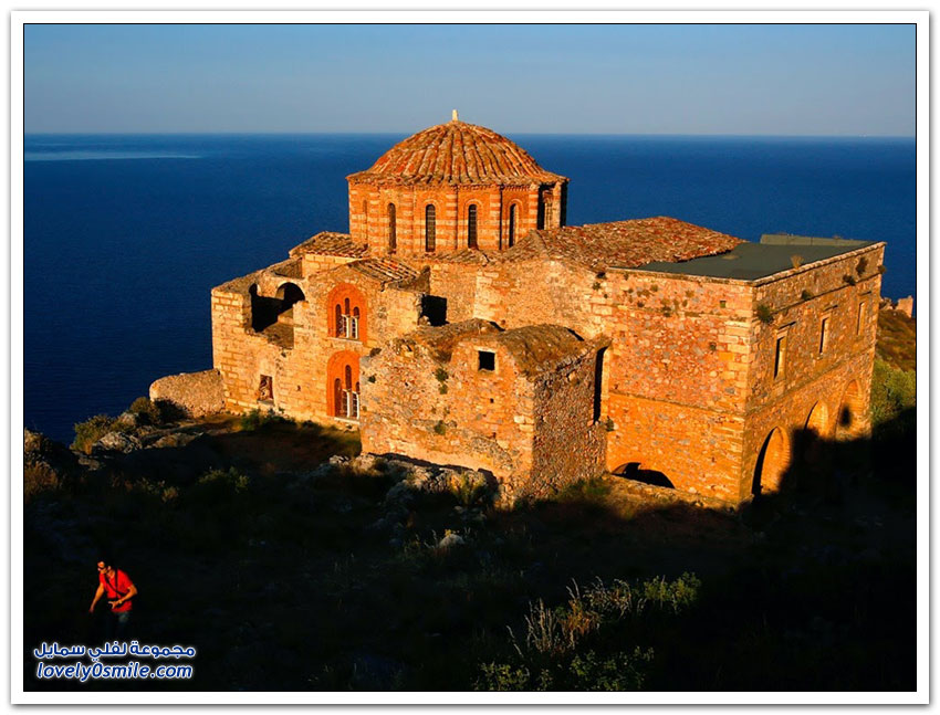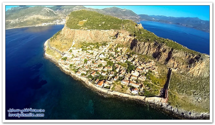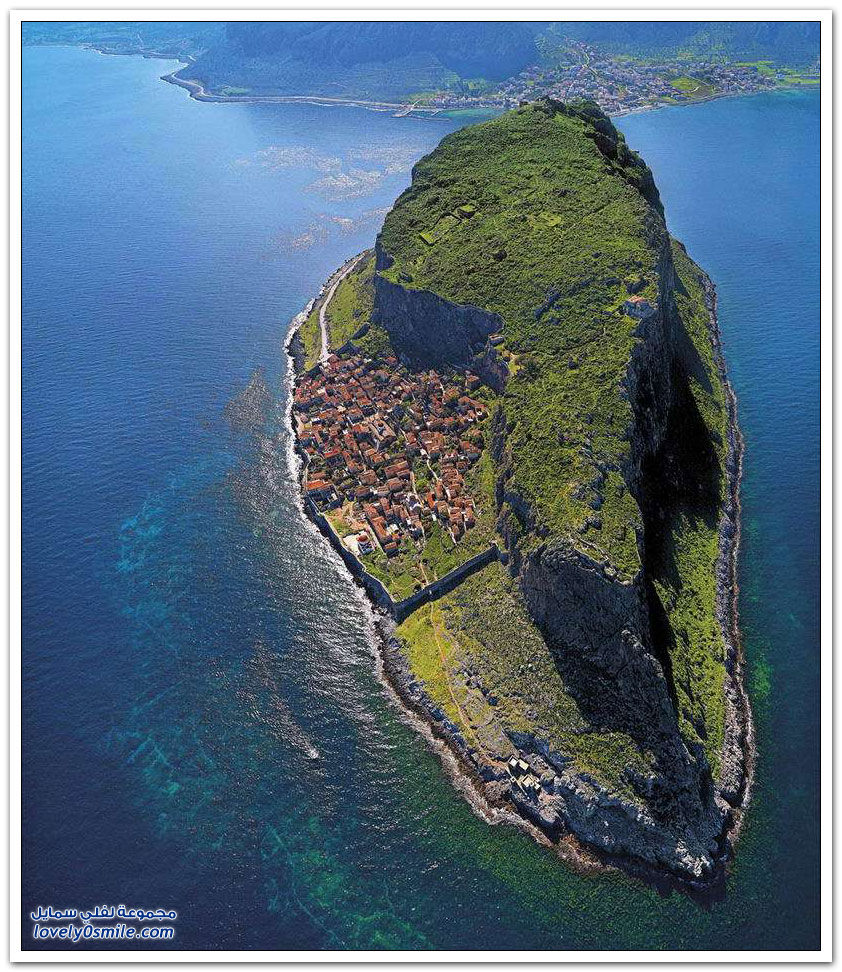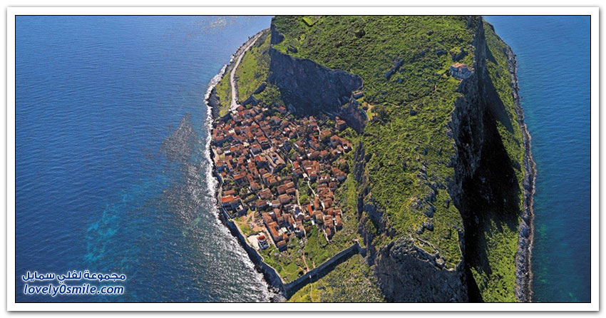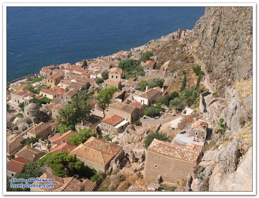 * مدينة مونيمفاسيا، خلف صخرة بحرية ضخمة، وفي مكان محاط بالمياه من كل جانب تتخذ هذه المدينة اليونانية الصغيرة موقعاً جذاباً جعلها تعرف بالمدينة المخفية، حيث بنيت بشكل غير مرئي تجنباً لهجمات العدو، وهي منحوتة بشكل كامل على الجانب الخلفي من صخرة البحرالضخمة منذ العصور الوسطى.