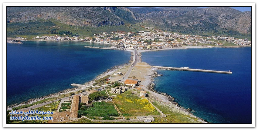 - وتقع على جزيرة صغيرة قبالة الساحل الشرقي لشبه جزيرة البيلوبونيز في اليونان، إلا أنها تتميز بكونها مدينة متكاملة تحتوي على العديد من المباني القديمة والطرقات التي تعود للقرون الوسطى.