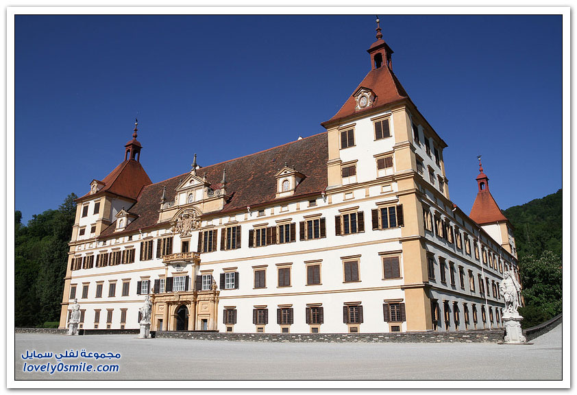 - يقع هذا القصر الكبير في الحافة الغربية لغراتس، ويشتهر بحدائقه الكثيرة التي تحيط به، كما يتكوّن من 31 غرفة، و52 بوابة، و4 أبراج ركنية، ويحتوي داخله على الأثاث الفاخر القديم، واللوحات الجدارية الرائعة، فهذا المجمع الكبير يعتبر مقصداً سياحياً للتجول بين أرجاء القصر والتقاط الصور التذكارية ومشاهدة طيور الطاووس التي يجوب أنحاء القصر في حدائقه الرومانسية.