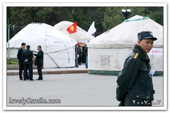 معسكرات تضم عددا من المعتصمين في العاصمة القرغيزستانية بشكيك للمطالبة بانتخابات رئاسية مبكرة.