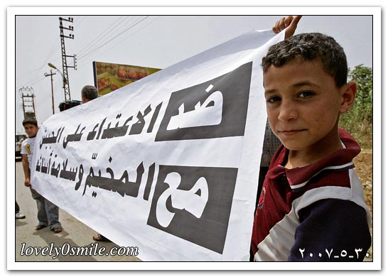 مظاهرة لأطفال من مخيم البداوي الفلسطيني المجاور لمخيم نهر البارد شمالي لبنان تطالب بالعيش في أمان.