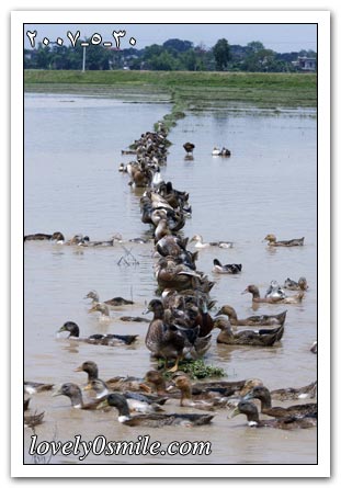 سرب من البط يسبح في حقول الأرز بمحافظة هاتاي التي تعاني انتشار فيروس أنفلونزا الطيور بها.