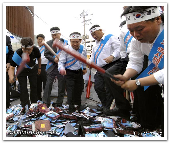 مئات الكوريين الجنوبيين يتظاهرون أمام السفارة اليابانية في سيول احتجاجا على أقراص مدمجة تحوي صورا مسيئة لجيش بلادهم.