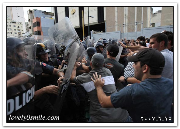اشتباكات بين متظاهرين والشرطة الفنزويلية في العاصمة كراكاس.