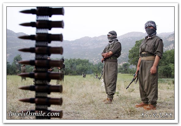 مقاتلون من كردستان العراق يؤدون تدريبات عسكرية قرب الحدود مع تركيا.
