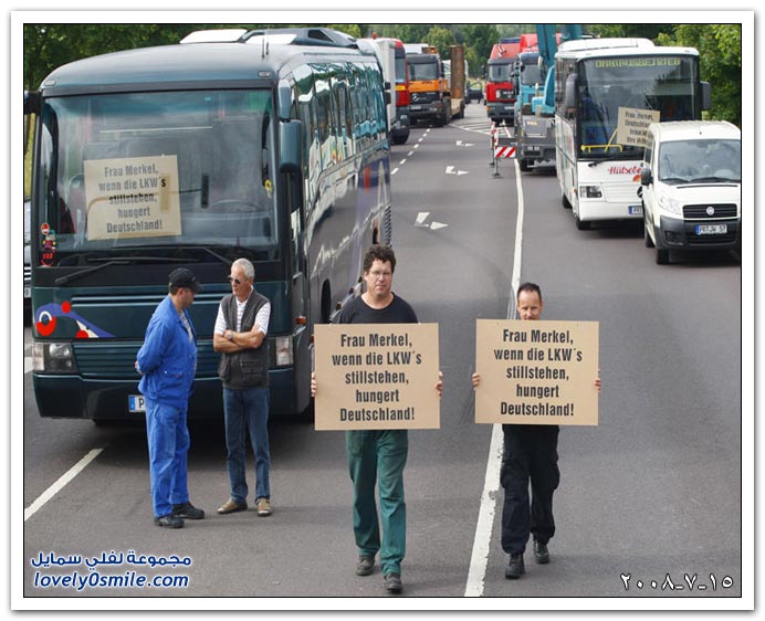 تظاهرة بالشاحنات احتجاجا على ارتفاع أسعار الوقود في ولاية براندنبرج الألمانية.