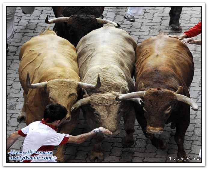 مهرجانات سنوية تقليدية للثيران في مدينة بامبولونا الأسبانية.