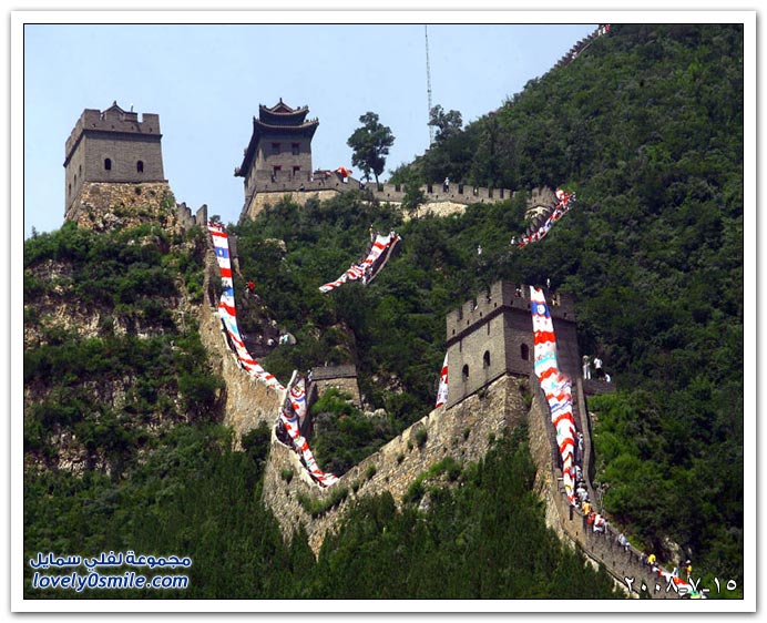 رفع أعلام دول العالم فوق سور الصين بمنطقة جيونج وان.