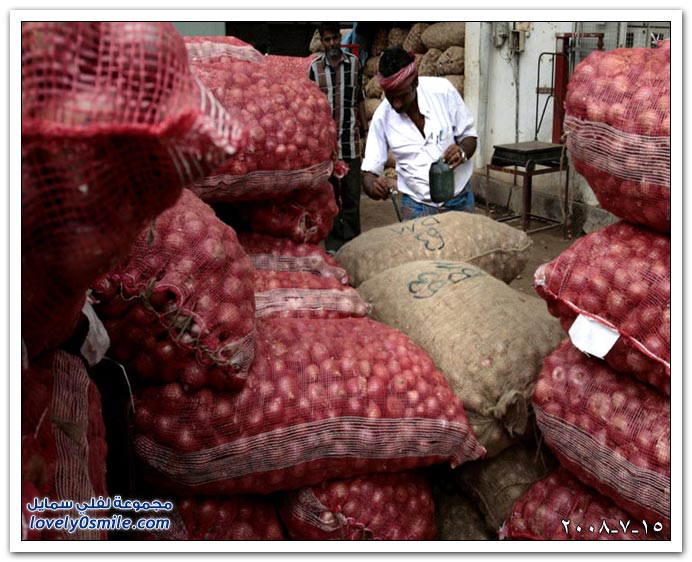 تخزين البصل في مدينة بانجلور الهندية بعد ارتفاع أسعار المواد الغذائية.