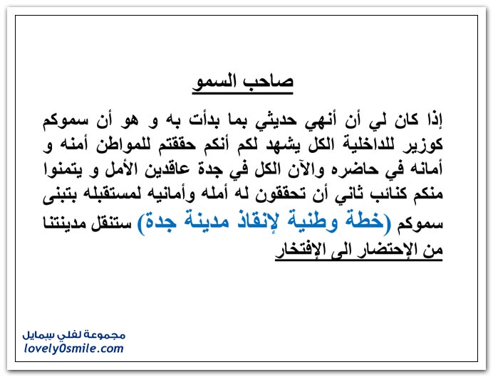 الشكر لصاحب الخطاب ,ثم للجهة التي أفرغته من محتواه ونشرته ولها كامل الحقوق فيما نقلت منه.