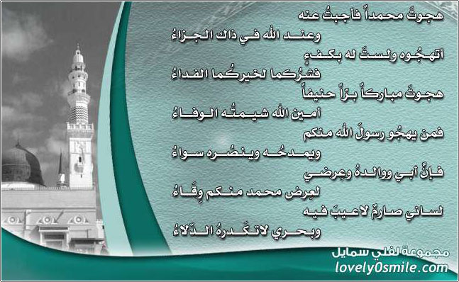 السلام عليكم انا من اشد المعجبين بالذائقة الرائعه لمصممي البطاقات من اختيار ابيات واخراج وتنظيم الالوان اتمنى لهم دوام التوفيق سلمت اياديهم والى الامام دائما باذن الله تعالى . ولاانسى شكر ادراة الموقع .