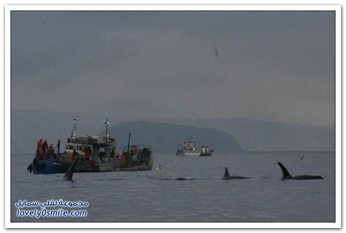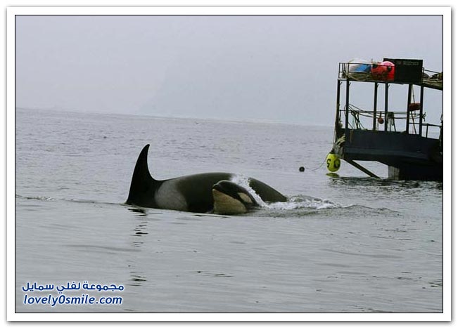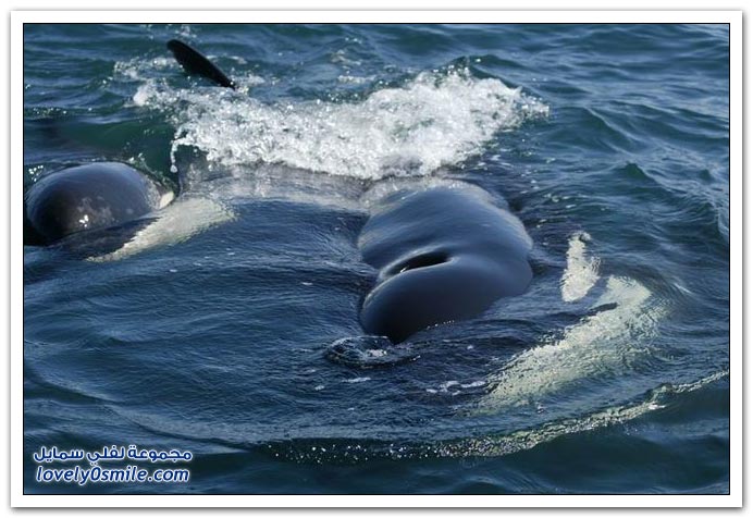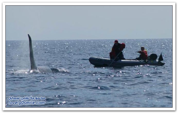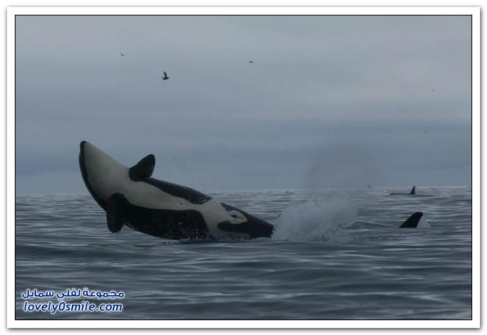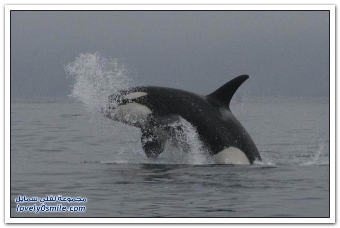 - تقفز الحيتان القاتلة من الماء وتهبط مرة على الجنب الأيسر ومرة على الجنب الأيمن ومره على ظهرها !! هل تعرف لماذا ..؟