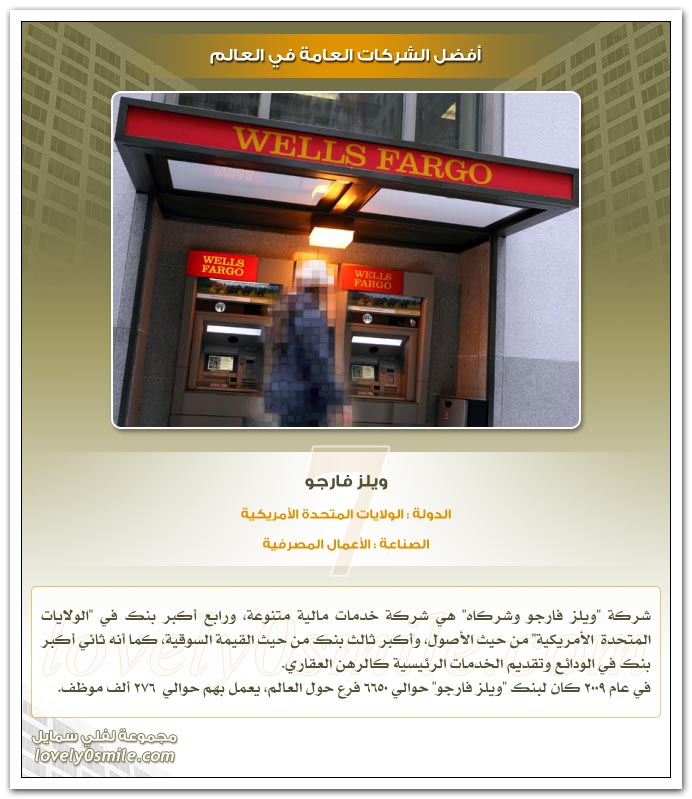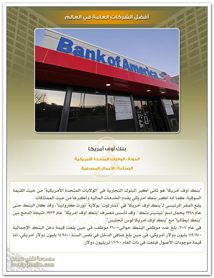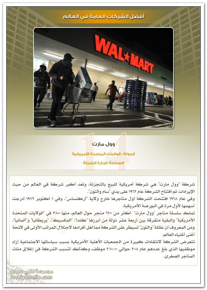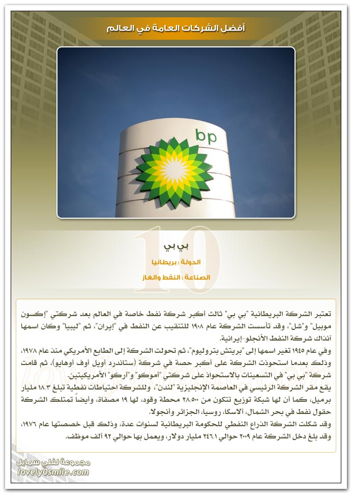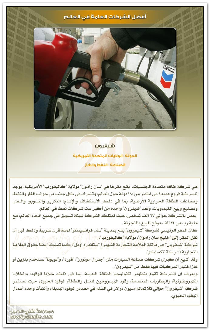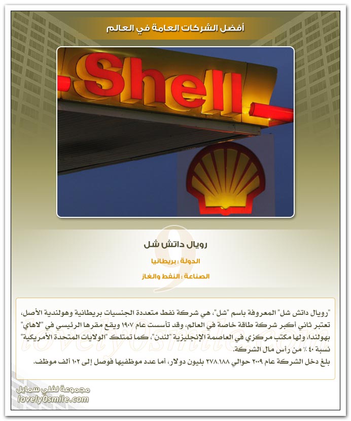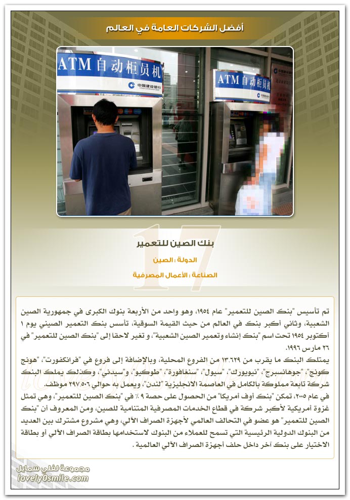 * تعد هذه الشركات من أفضل الشركات علي مستوي العالم ، حيث تم ترتيبها وفقاَ للقيمة السوقية لهذه الشركات ، وكذلك حجم الأرباح التي تحققها ...