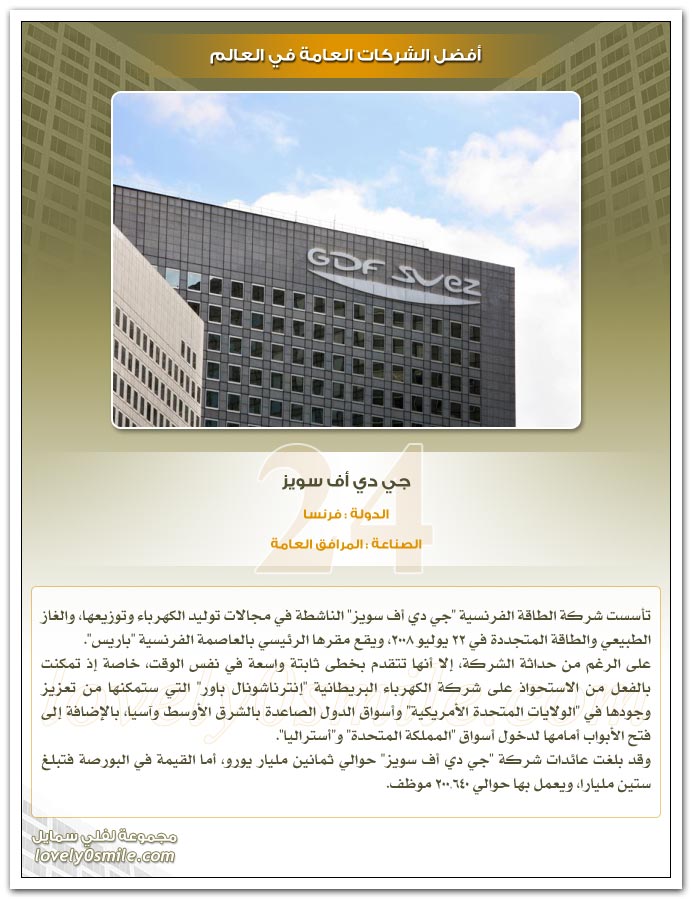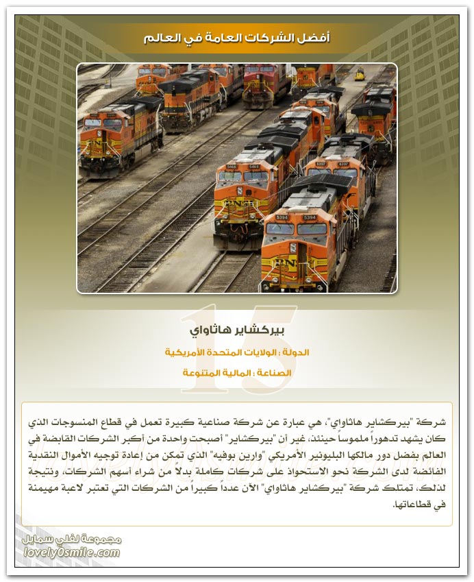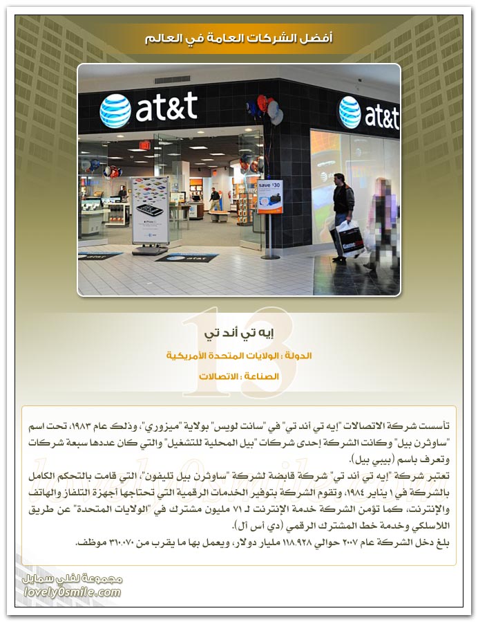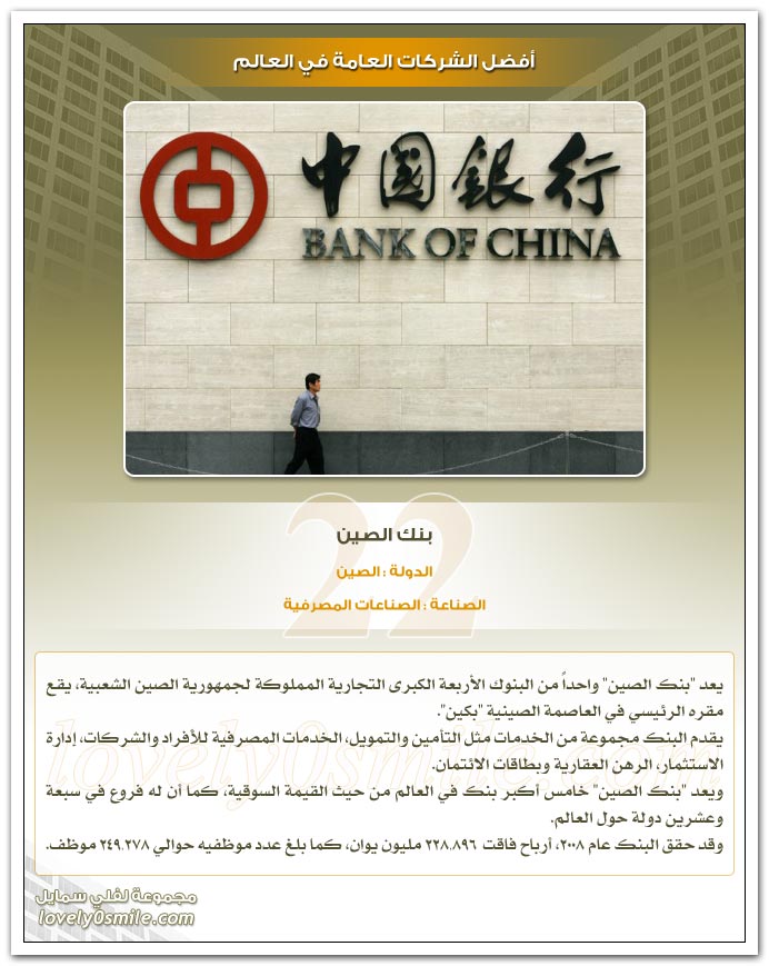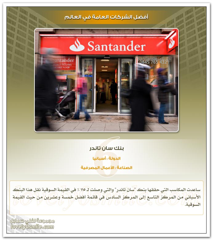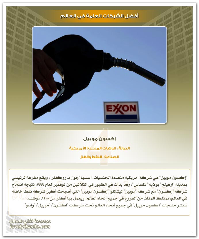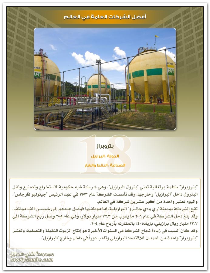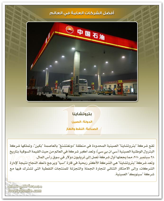 * تعد هذه الشركات من أفضل الشركات علي مستوي العالم ، حيث تم ترتيبها وفقاَ للقيمة السوقية لهذه الشركات ، وكذلك حجم الأرباح التي تحققها ...