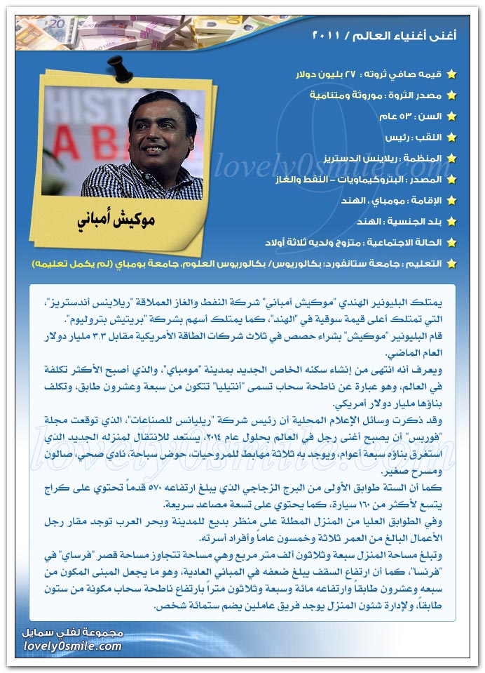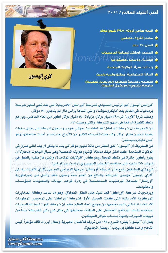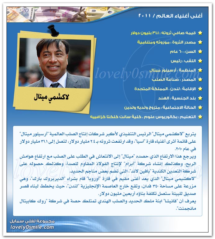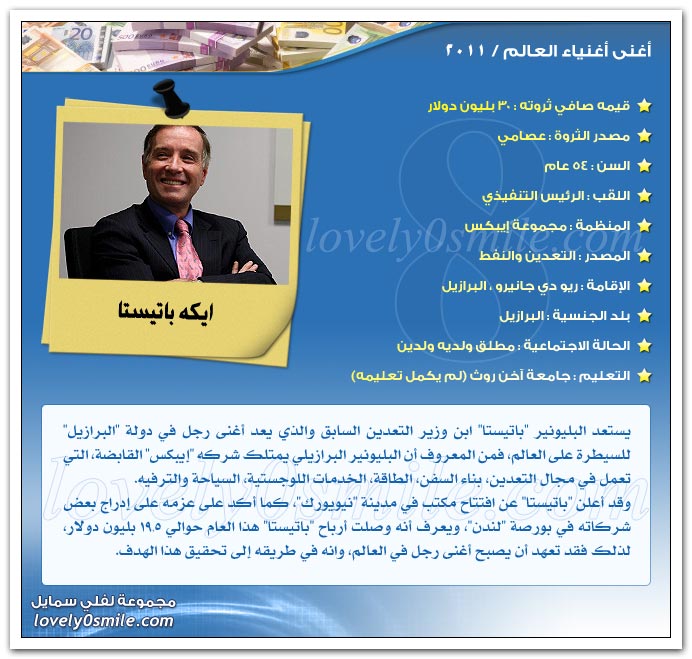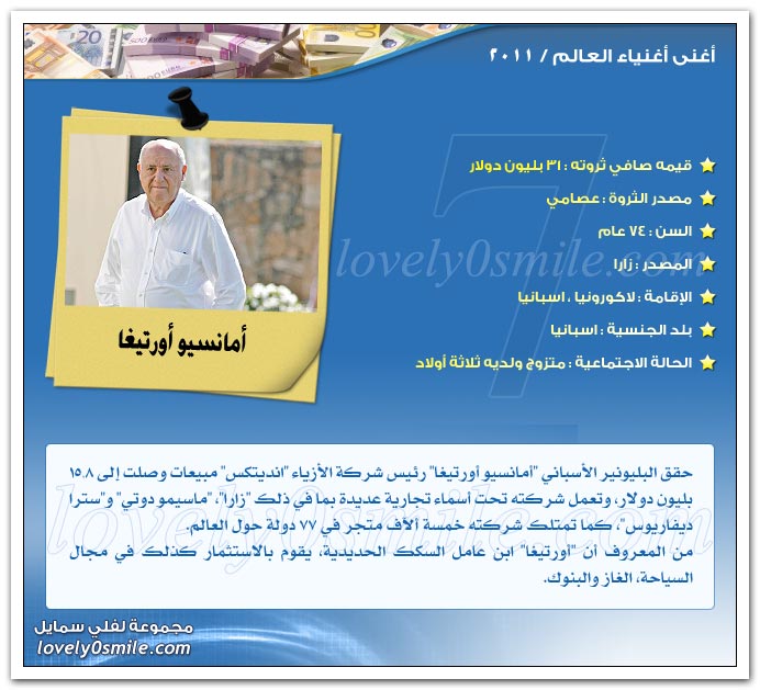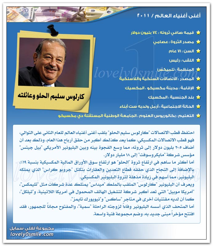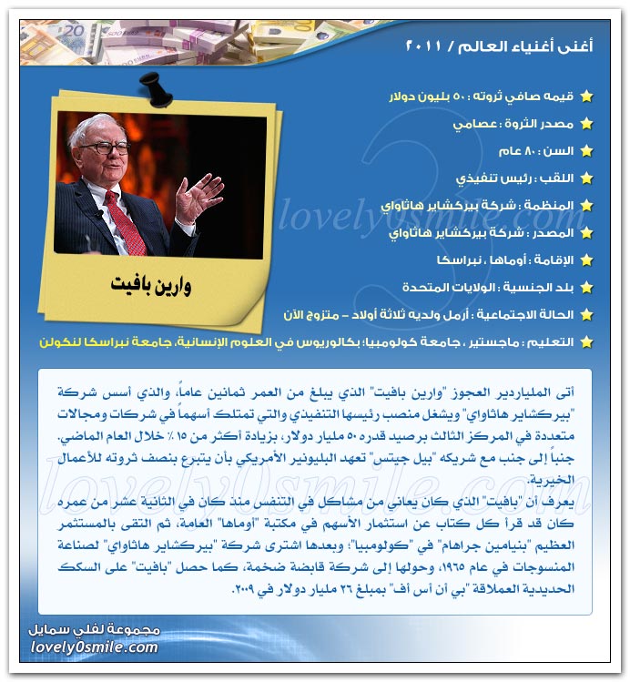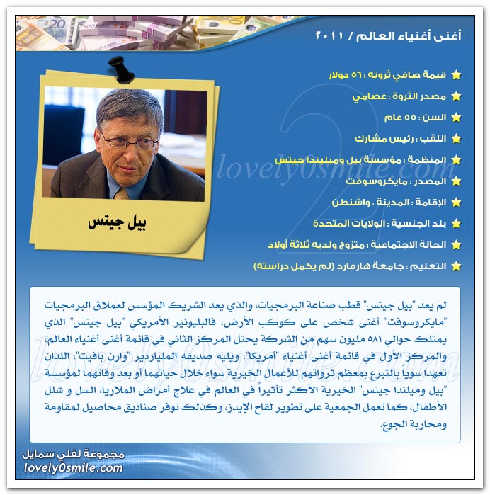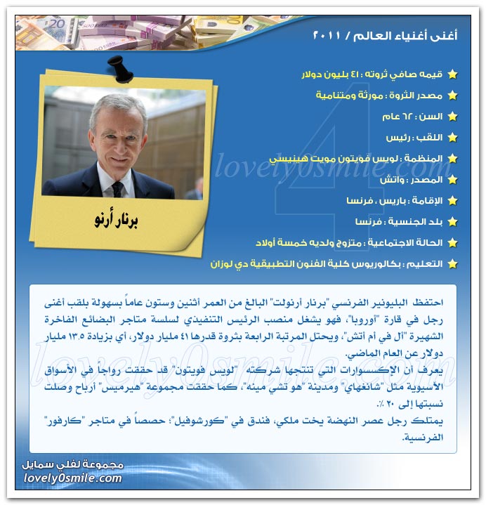 والآن هيا بنا لنتعرف علي أثرياء العالم لعام 2011..