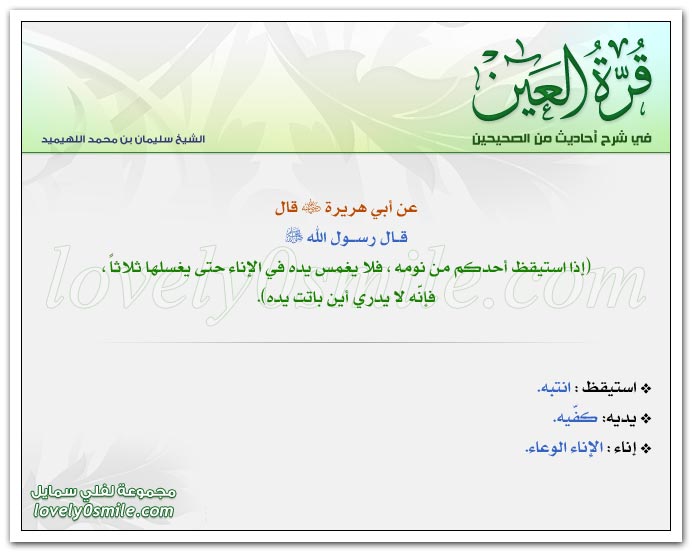 1- يستحب للإنسان إذا استيقظ من نومه أن يغسل يديه ثلاث مرات قبل إدخالها الإناء.