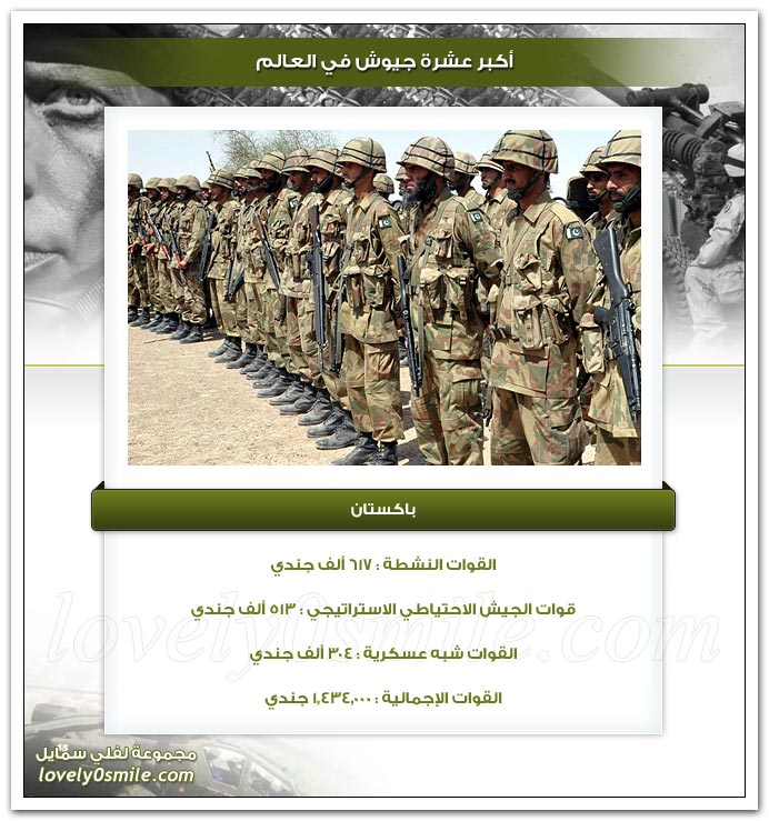 أمممم فى حاجة فى التقرير ده معروف إن القوات المسلحة المصرية عددها حسب إحصاء 2008 450 ألف واحد وموجود إحتياطى 8,347,560 حسب 2005 وقوات شبة عسكرية 300 ألف + حرس الحدود والحرس الجمهورى فإزاى مش موجودة فى التقرير ؟؟!!! وللتذكير الجيوش مش بعددها المعروف إن الجيش بمستوى تسليحه وتنظيمه وإستعداده